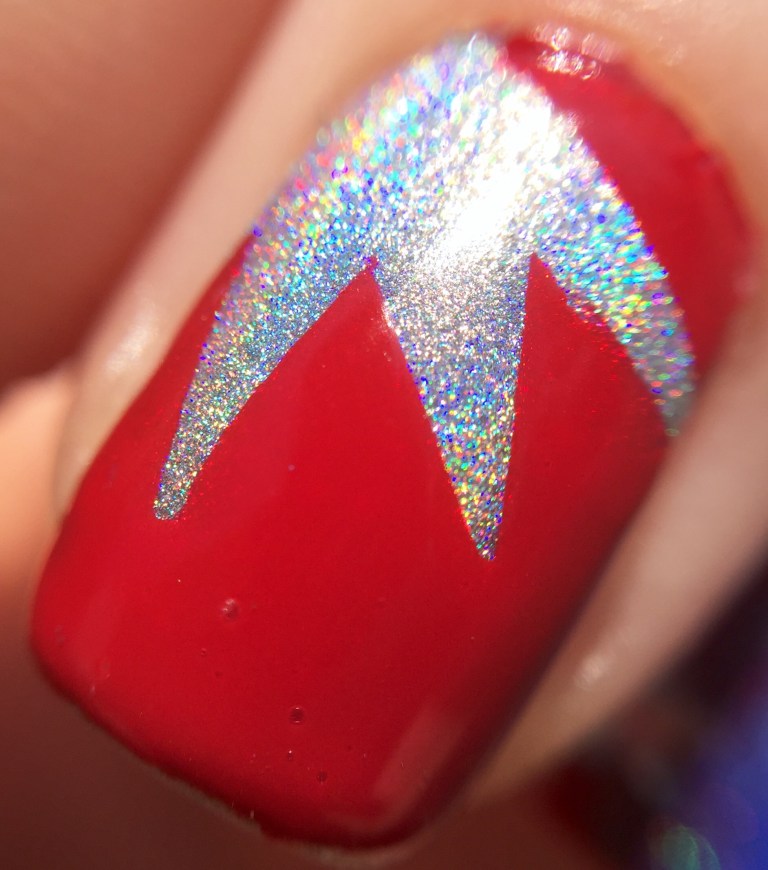I started off with a base of Color Club “Harp on It,” because I actually don’t any regular white polish and because HOLO FOR AMERICA. On my pointer and ring fingers, I then used burst vinyls from Vibrant Vinyls and Julep “Karissa.” The burst vinyl kid of reminds me of patriotic bunting.