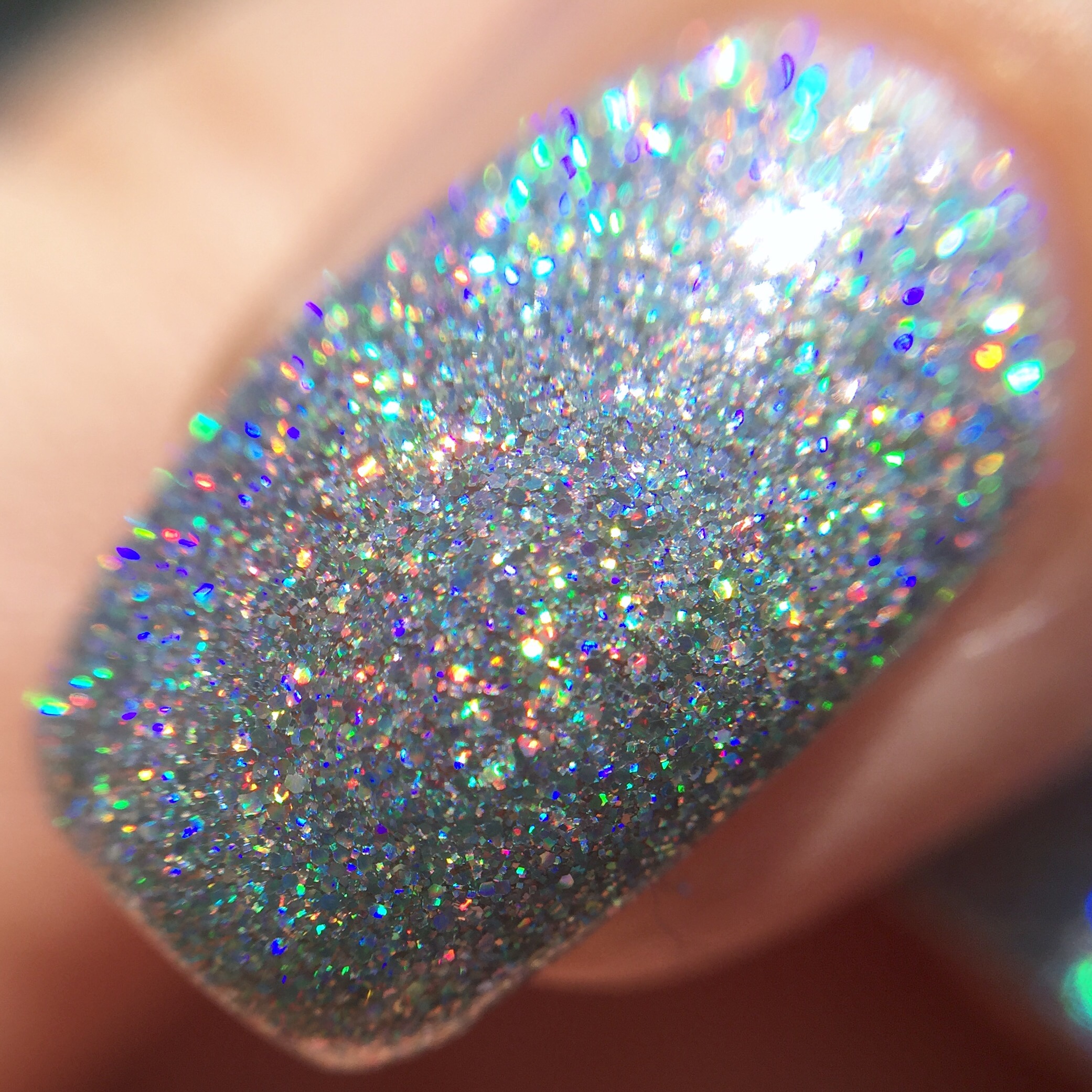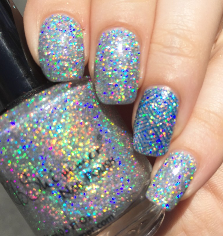 For a bonus, here’s evidence of my camera struggling to capture the holo-ness of this polish: