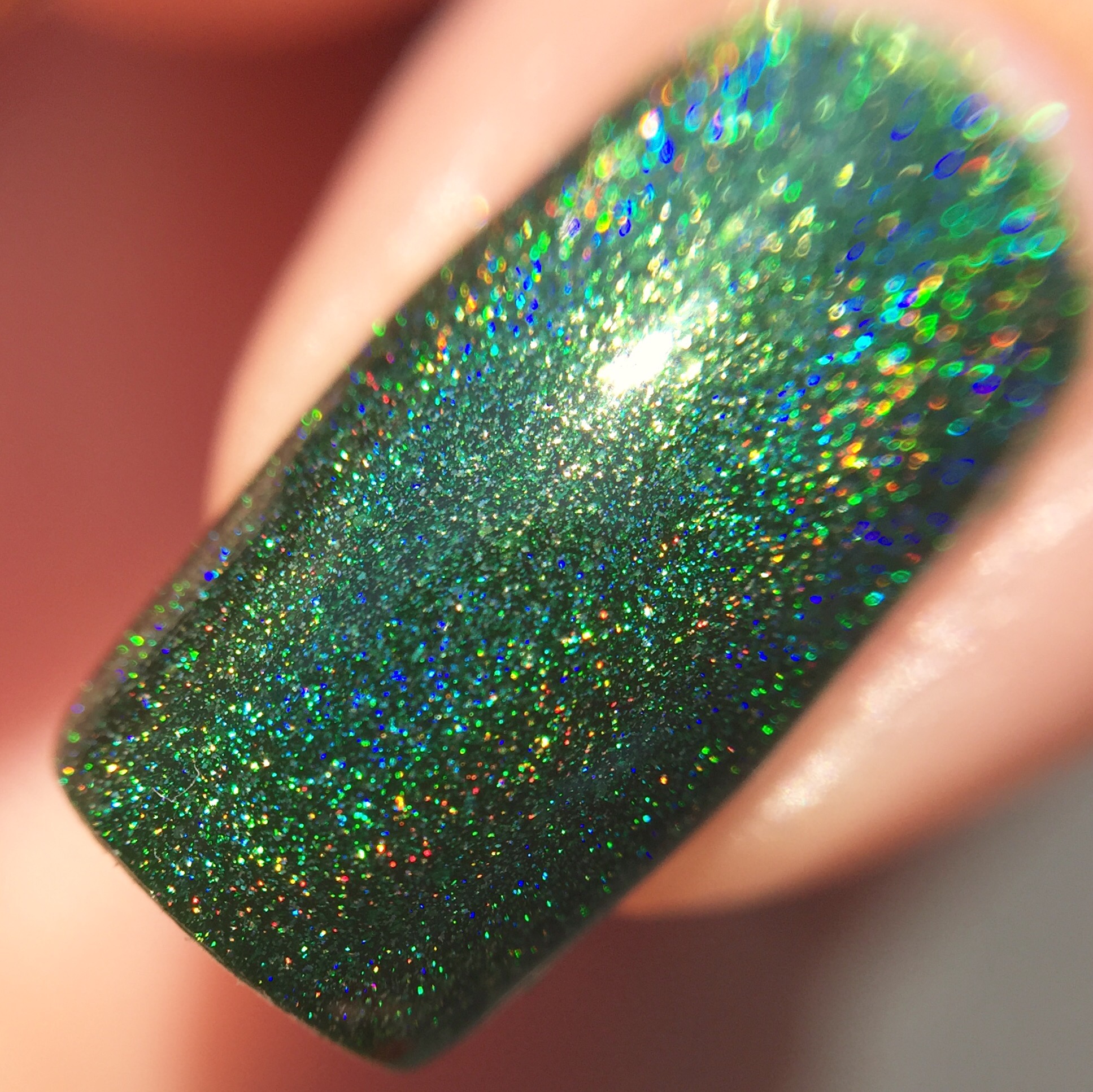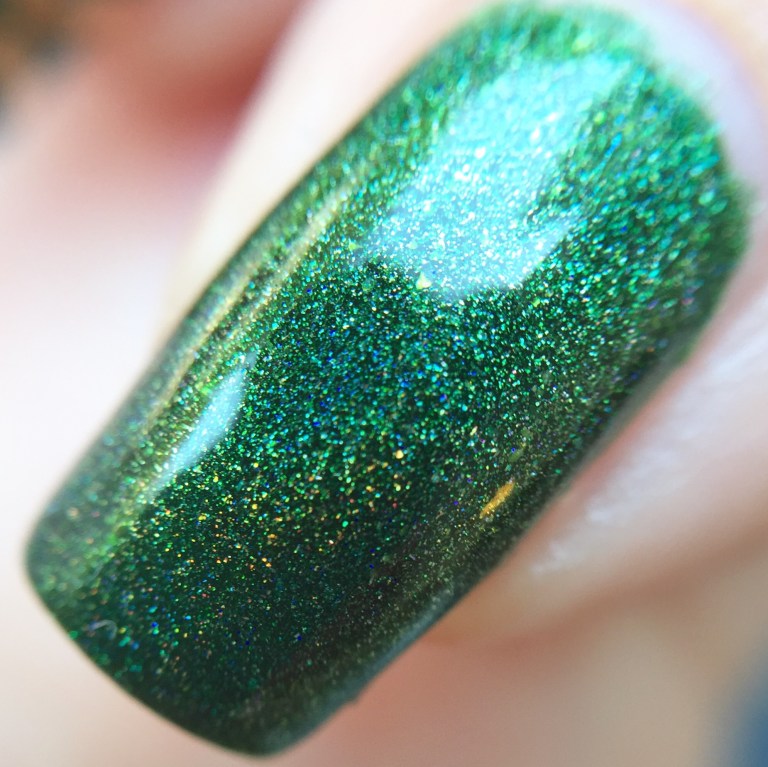 Yes, I know I promised to keep the summer colors alive and kicking- but I’m asking for a pass with this almost wintry shade because it’s from a summer box! This is Imperium Sine Fine (or “empire without end” for the non-Latin folks), an evergreen holo from Different Dimension made exclusively for Llarowe’s “A Box, Indied.” August’s box was themed “all hail holos,” and I just couldn’t resist the Roman twist or the variety of holo shades.