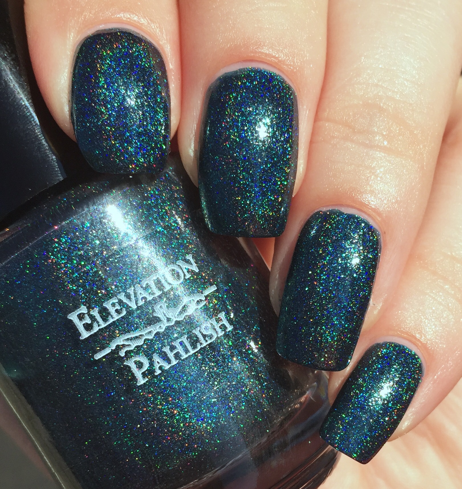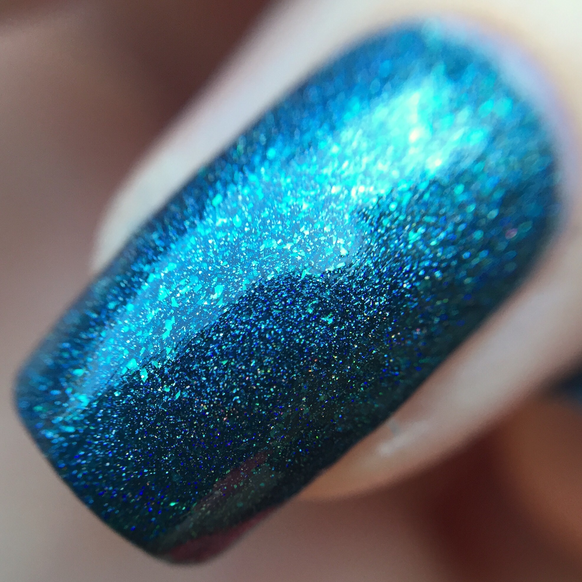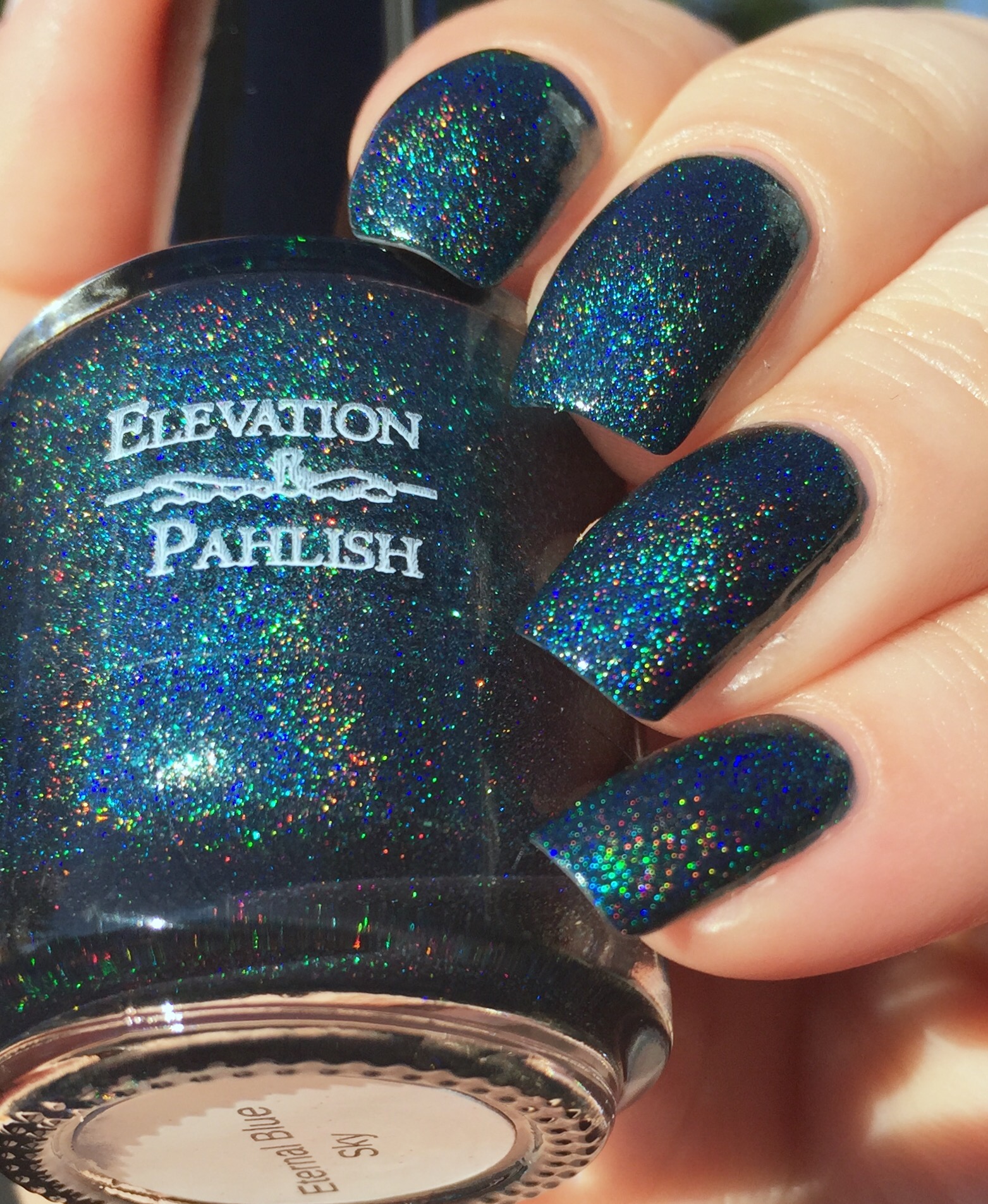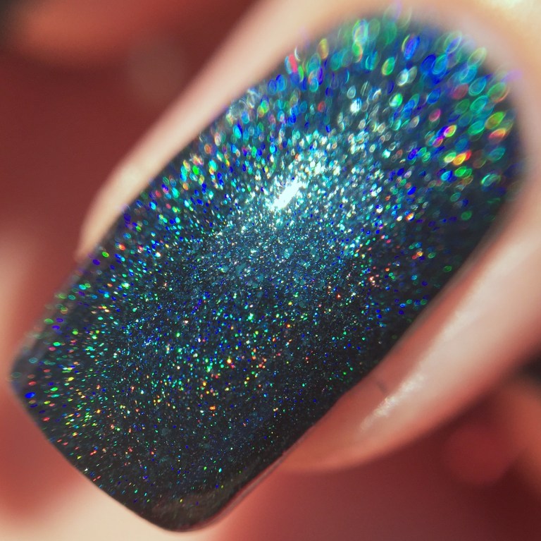Wearing Pahlish’s inspired take on “The Eternal Blue Sky” I also wish I lived in a place with endless sunny days. Look at that holo! Even in indirect light, this deep teal shade was throwing off major rainbows.