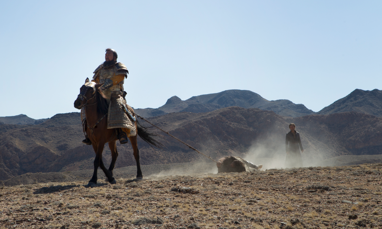 Whenever Kublai Khan is done listening to other people’s advice and wants to remind people just who is the Khan of Khans, ruler of a really large chunk of the planet (some researchers estimate the Mongolian Empire at its peak covered 1/3 of Earth’s landmass), he invokes “the eternal blue sky of my grandfather, Genghis Khan, descended from the wolf.” Kind of an impressive lineage, and it is respected in the show. The idea of the eternal blue sky also has a bit of a sacred aspect in the show (and medieval Mongolian culture), since Mongolia is one of the sunniest places in the world, and so the great expanse of sunny blue sky is ever-watchful over the Khan’s people.