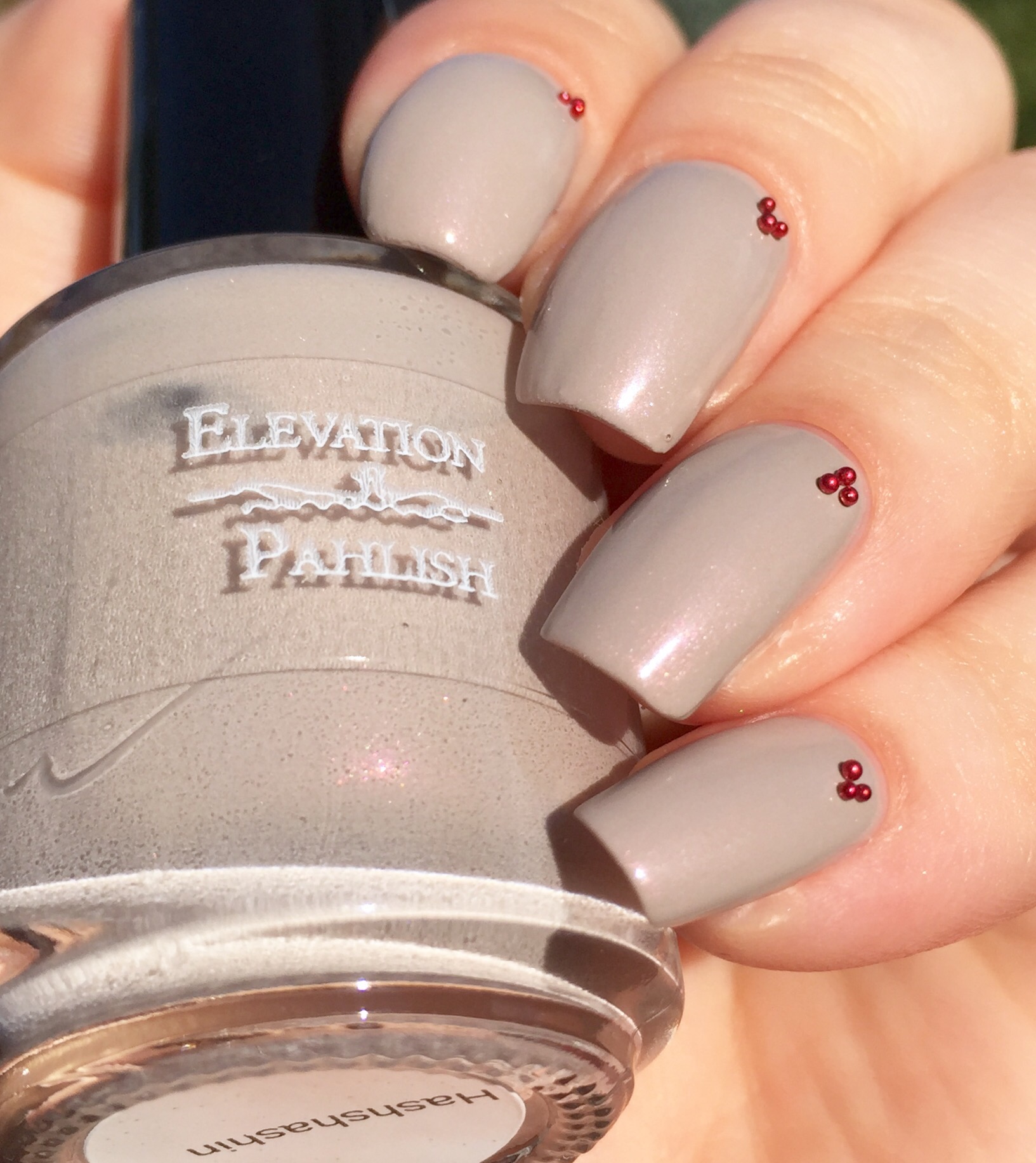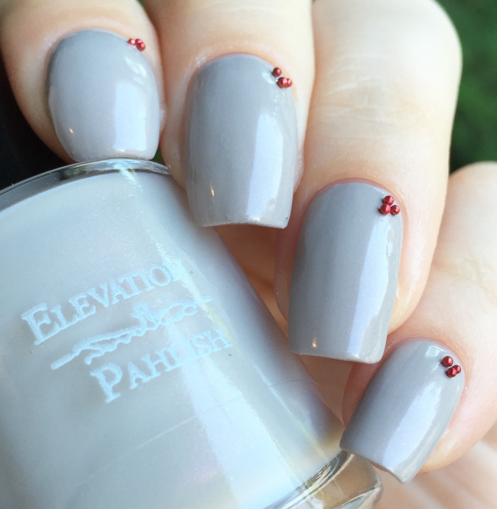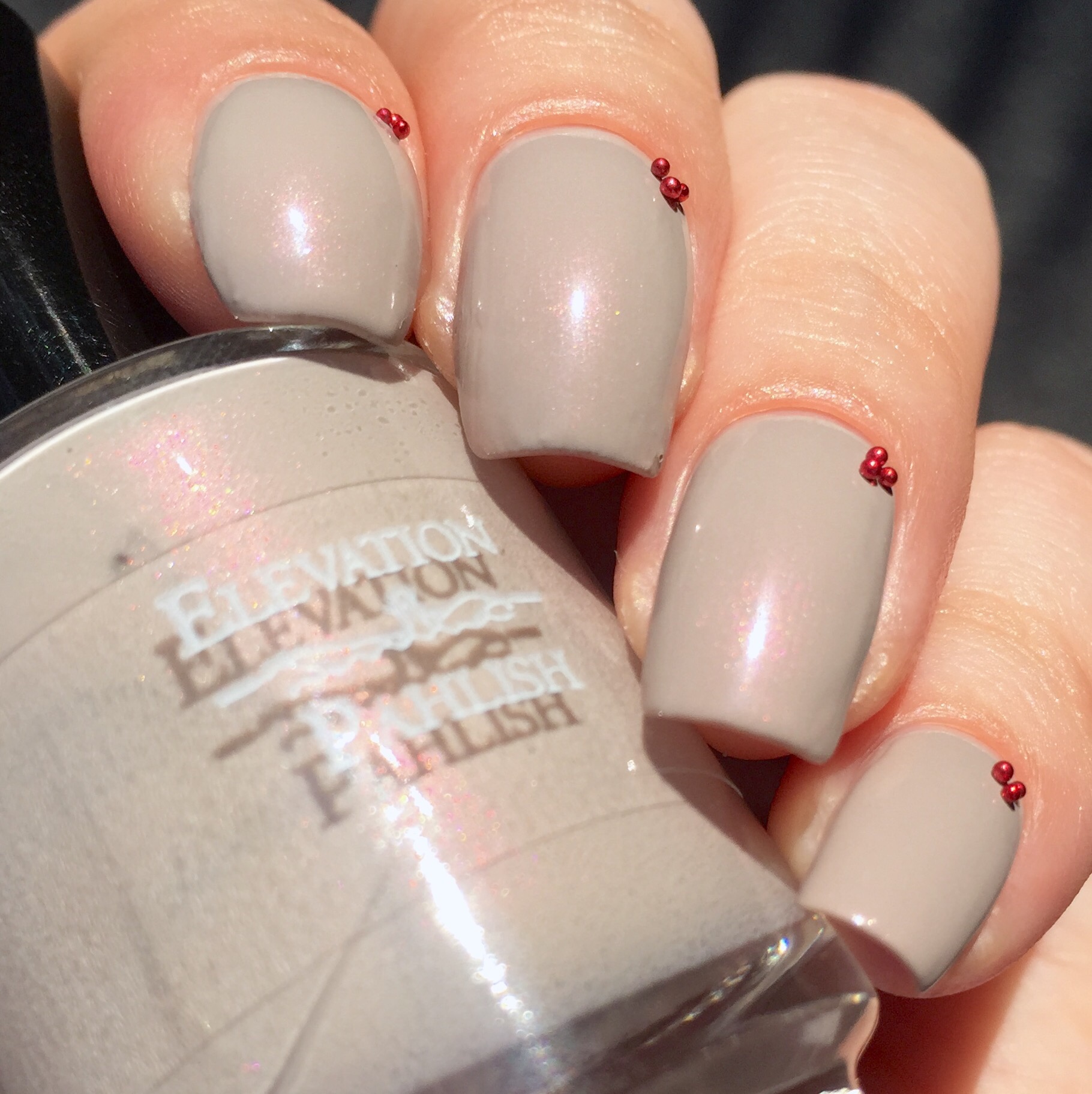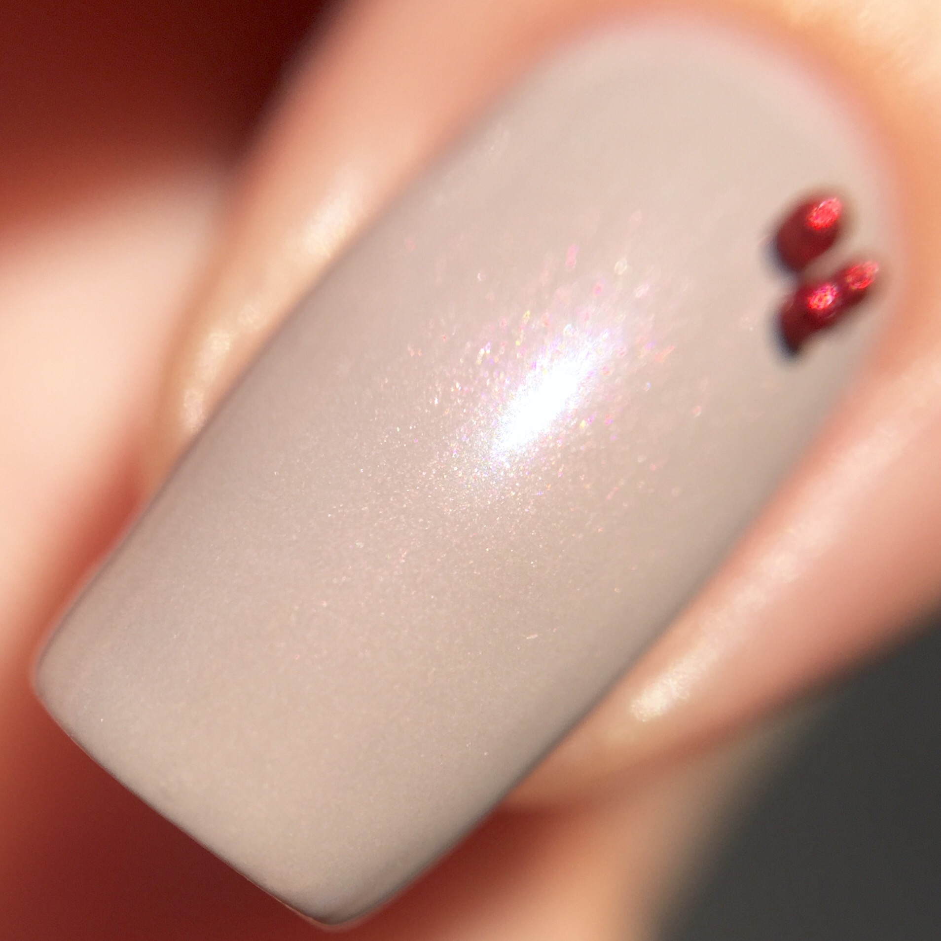 This polish was shockingly opaque. I almost never wear nudes, since they cause me so much frustration (sometimes they’re thick, sometimes they’re sheer, sometimes they’re way off for my paler-than-the-moon complexion). But this. This. It blew my expectations out of the water.  Where has this been all my life?! This is two coats and no top coat. Perfectly opaque and satisfyingly glossy. The formula makes it really easy to work with, and it is surprisingly self leveling (I don’t know why I’m even surprised anymore- all Pahlishes are like this). I was so pleased with it that I threw on these tiny little red balls that I’ve been saving for nail art (sometimes I lose control and do unexpected nail art?).