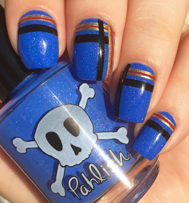 I wish I was more into sports to do a mani, but I am so terrible at keeping up with things haha. I never know who’s winning or what’s happening. Beautiful mani, I especially love that blue base.
