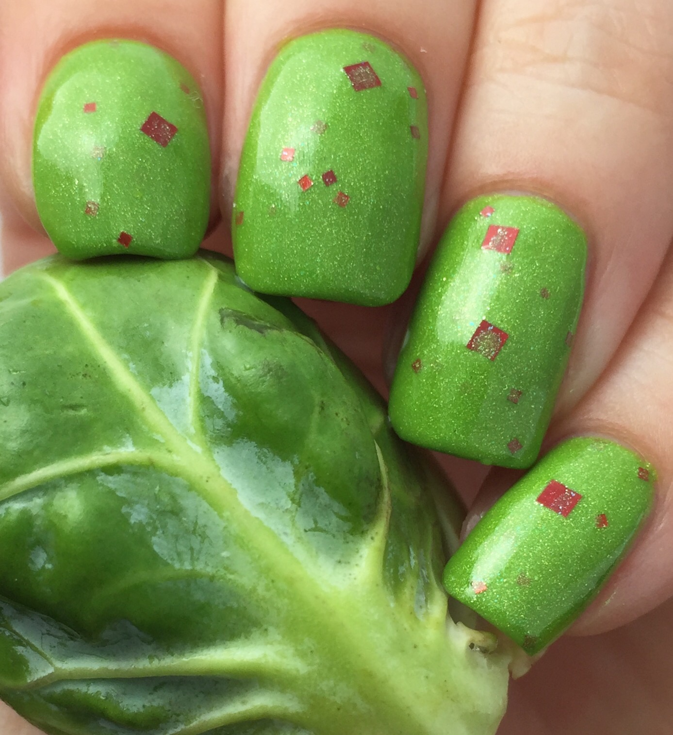 So right after I took these pictures, I started making my dinner for the evening (there was hand washing in between)- dinner included Brussels sprouts which turn out to be the same color as “Sheer Poetry!” I couldn’t help but take a picture. It’s like the domestic lunatic’s version of those glamorous posed shores with fancy props.