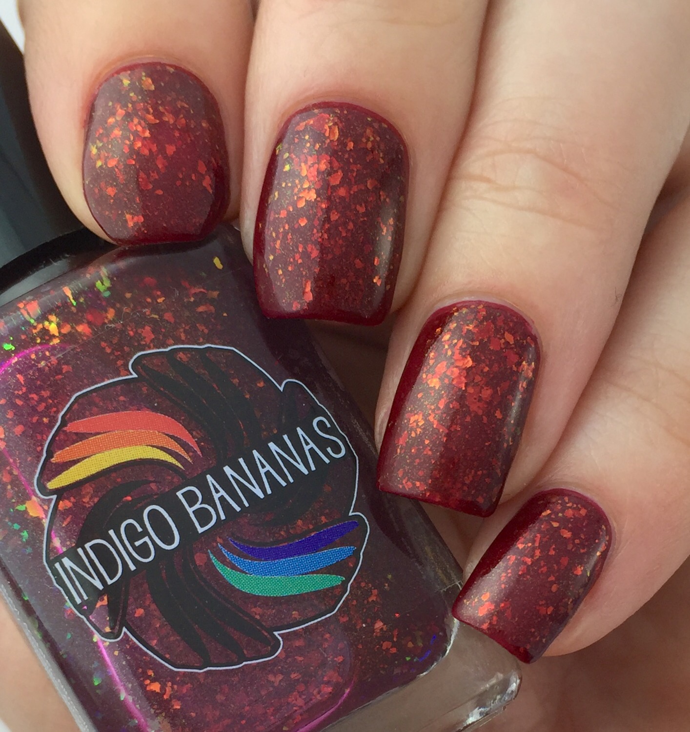 Feast your eyes on Indigo Bananas “Reign,” a red jelly with duochrome flakies!