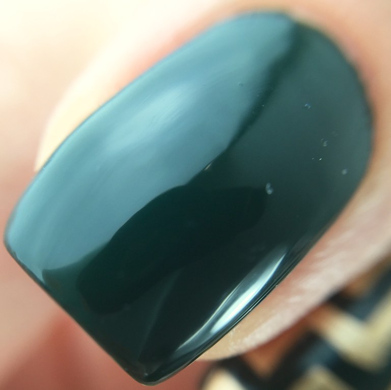 The only problem with my love of dark green polish is that I am a pale person. The palest. So against my papery white skin tone all these beautiful dark greens look black to my eyes (as you can tell, I’ve brightened these photos to try and bring out the green. I know it’s green in my heart, but under the fluorescent lights of my office and in the warm dimness of my living room it just appears black. I have the same problem with any dark purple, red, or blue creme.